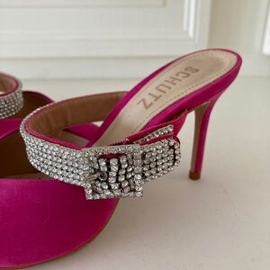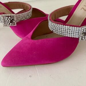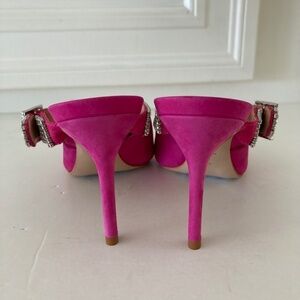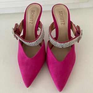 NWOT Anthropologie Schutz Nobuck Pink Jeweled Pointed Toe Heeled Mules Sz 5