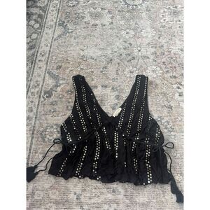 NWOT Anthropologie Sequined V-Neck Tank. Forever That Girl. Black. Size Large. This occasion-ready tank features fabulous sequin embellishments, catching the light for plenty of dazzle and shine. Cotton, viscose, spandex