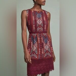 NWOT Anthropologie Shift Dress AKEMI + Kin Embroidered Burgandy Party Dress 12.