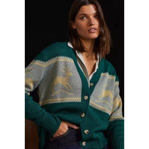 NWOT Anthropologie Tiny Reindeer Cardigan Sweater Holiday Z453
