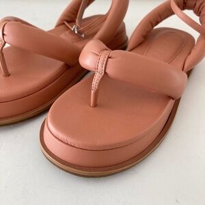 NWOT Anthropologie Vicenza Puffy Thong Leather Ankle Strap Pink Sandals Sz 36