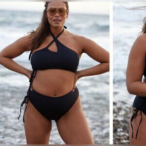 NWOT Anthropologie Women's Bikini Bottoms Side-Ruched High Waisted Black Plus 1X