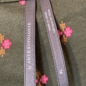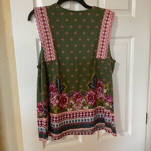 Anthropologie "Sigrid" top in olive green, pink,and blue. With embroidered cap sleeves and front placket. New but without tags.