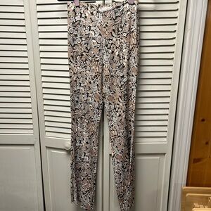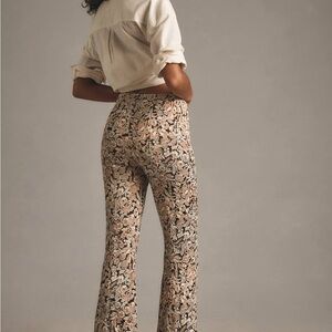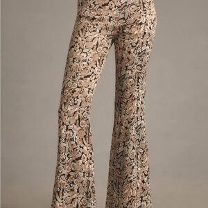 NWOT Anthropologie satin Floral flare Pants - Black and Tan