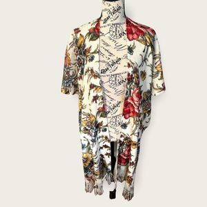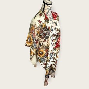 NWOT Anthropologie sunflower shawl poncho light weight with fringe one size