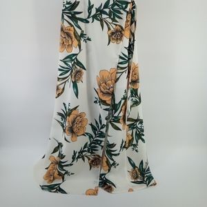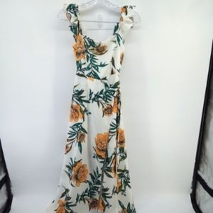 NWOT Anthropologie zhu Tropical Floral Orange Leaves Slit Flowy Dress S