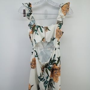 NWOT Anthropologie zhu Tropical Floral Orange Flowers Green Leaves Slit Flowy Dress