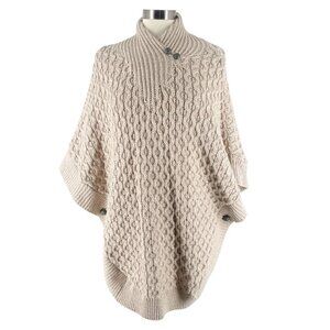 NWOT Aran Mor Ireland Cream 100% Merino Wool Knit Pullover Poncho Women's M/L