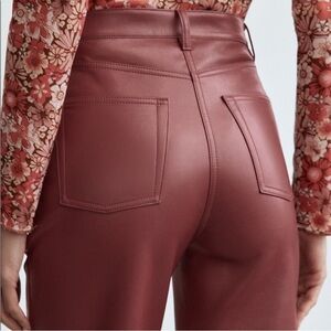 The one, the only, the Melina. These are high-rise straight-leg pants with five-pocket styling and a universally flattering fit. They’re made with our innovative Vegan Leather that looks and feels like the real thing. They have an authentic drape and a soft sheen that feels right from day one