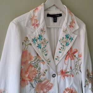 NWOT Armor Jeans L Boho Western Multi Floral Embroidered Ranch Rodeo Jean Jacket
