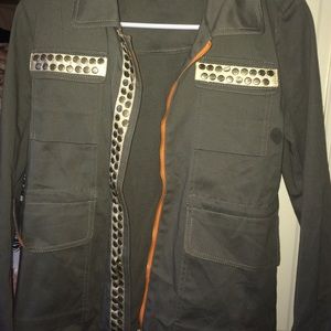 Brand new! Very cute with orange detailing . Small stain on right shoulder next to pocket because I spilled something on it right after buying it in the bag. Can most likely be removed very easy