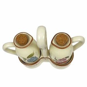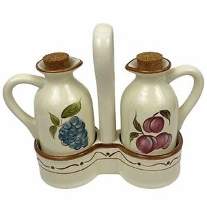 NWOT Around the Orchard by HOME Vinegar and Oil Pottery Bottle Set W/ Ca…