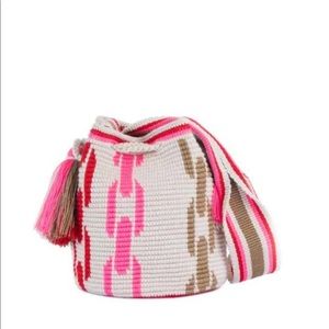 Pattern is based in the figure of a crown, made through silk thread. Made by the technique of one single thread, with all the touch of luxury a Wayuu mochila can have! It takes aprox 22 days for a wayuu woman to weave this bag.