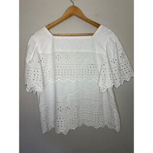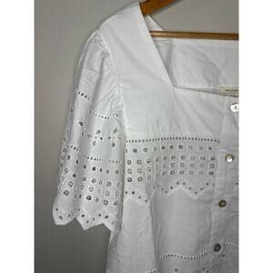 * NWOT Artelier Nicole Miller White Button Down Short Sleeve Size L Puff Sleeve