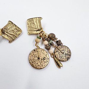 NWOT - Artisan BOHO Gold Tone Textured Dangle Clip-On Earrings