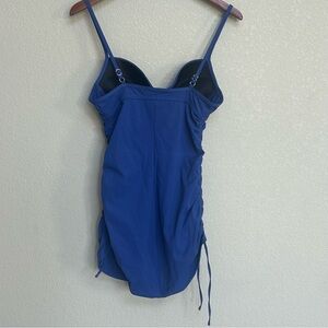 NWOT Assets by Sara Blakely Spanx Swimsuit Blue One Piece Tummy Control Ruched Cups Size M