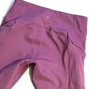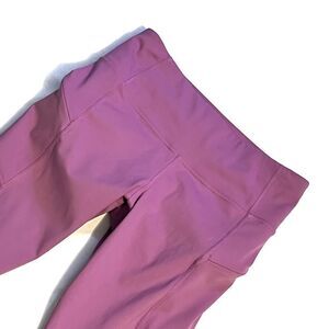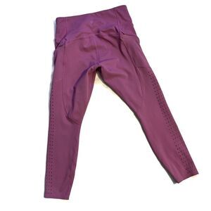 Stylish pinkish/purple athletic leggings with laser cut details. Perfect for workouts or casual wear.