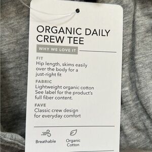 Tee Crew Size Large Gray lightweight Soft Organic Cotton Never Worn, no tag attached