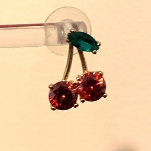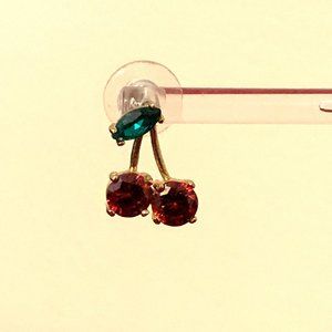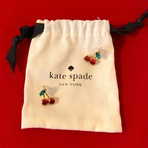 NWOT Authentic Kate Spade Captivatingly Charming Ma Cherie' Cherry Crystal Studs. These cute studs in gold plate, which have never been worn, feature shiny steel posts with cubic zirconia, crystal cherries and leaves, and a postback.