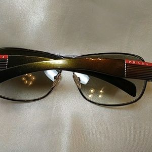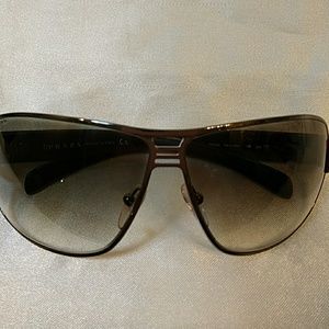 SOLD New and authentic. Purchased at Saks in Scottsdale, AZ some years ago for my late husband, who never wore them. They've been languishing in the closet and need a new home. Unisex style, but these are big and most likely fit a man's face better. Grey gradient lenses, arms are metallic bronze/brown. Will include the case.