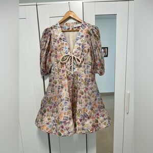 NWOT Authentic ZIMMERMANN High Tide Laced Mini Dress in Stamp Print Size AU3
