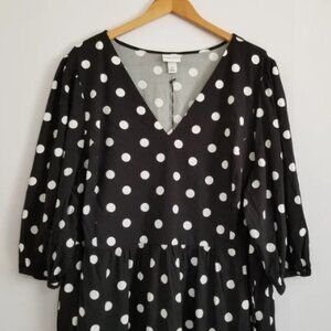 NWOT Ava & Viv Black & White Polka Dot Midi Dress