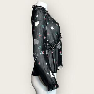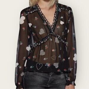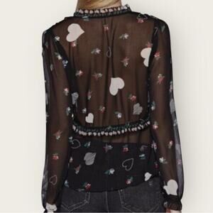 NWOT | Avec Les Filles | Sheer Heart Print Blouse | Black Multi | Medium