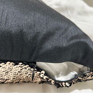 20” X 20” down pillow. Champagne and black sequin mermaid pillow. Black silk back. Case zips off. Gorgeous pillow!