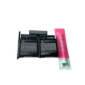 This bundle includes 2 eyeshadow palettes, 3 lipsticks, a lip liner, and an eye liner. One eyeshadow palette is Purple Pop, the other eyeshadow palette is Matte and is called on the quad. One lipstick is ultra hydrating and the color is Plum Verbena, One lipstick is Nourishing and the color is Concord Grape, the last lipstick color is Berry Berry Nice. The lip liner is a glimmerstick and the color is electric plum. Lastly the eyeliner color is Blazing Blue.