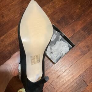 Doesn't look like they have ever been worn. Stored in cloth bags to preserve the material. Beautiful rhinestone accents on the outside of each boot. In box but missing the lid
