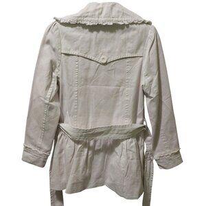 NWOT Aziz White Double-Breasted Belted Trench Coat With Ruffle Accents Medium