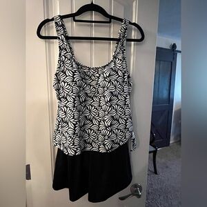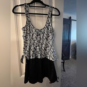 This stylish black and white swim dress offers a chic and comfortable fit for your beach outings. The elegant pattern adds a touch of sophistication to your swimwear collection.