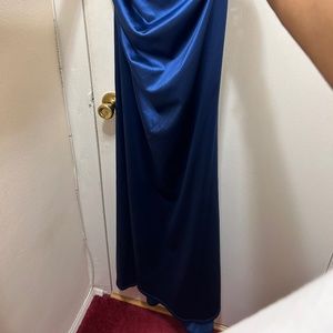 NWOT B. Darlin Sleeveless Satin X-Back Long Marine Blue Dress- Size 13/14