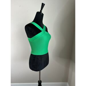 NWOT BABATON Women's Kelly Green Sculpt Knit Criss Cross Cropped Tank Size S