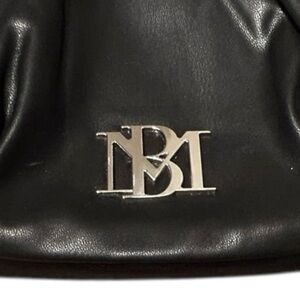 NWOT BADGLEY MISCHKA Black Vegan Leather Ruched Crescent Round Handbag Shoulder Bag