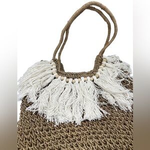 NWOT BALI BOHO Handmade Woven Crochet Fringe Hobo Bag