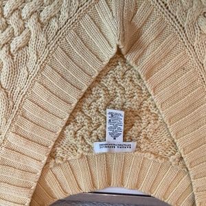 Selling my beautiful butter yellow cable knit sweater. Was looking forward to wearing and now, it’s to small😳😩😩😩 my loss, your gain