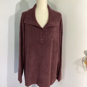 NWOT BAREFOOT DREAMS COZYCHIC LITE PLUS 2X BURGUNDY PULLOVER 3/4 BUTTON COLLAR