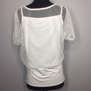 INFO: Mesh Overlay Top over Tank Top; Cold Shoulder; Fitted Tummy; Pull Over; No tags on this garment
