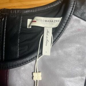 NWOT BCBG Max Azria Runway leather top with color-blocked panels. Size L