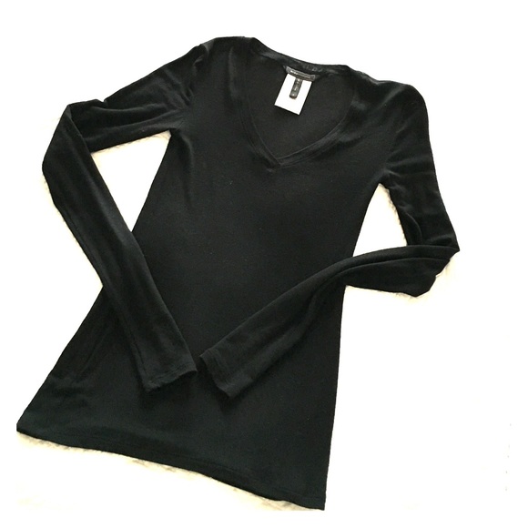 BCBG MaxAzaria wool blend fine knit sweater. Color- black. Everyone needs a sheer black sweater to layer. Pair it with a black bra on date night. New but no tags. (Also available in cream under separate listing).