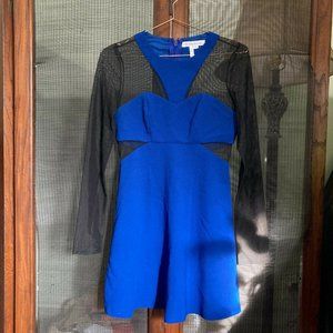 NWOT BCBGENERATION ELECTRIC BLUE BLACK MESH SWEETHEART SKATER DRESS