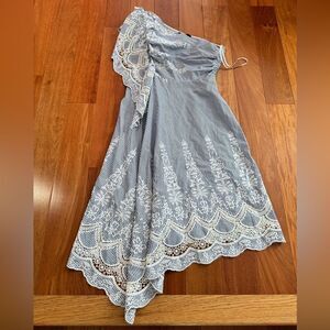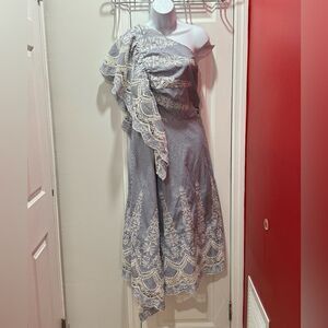 NWOT BCBGMAXAZRIA BCBG One Shoulder Embroidered Stripe Dress Blue Combo Size 14