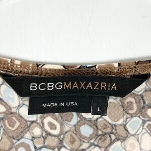 NWOT BCBGMAXAZRIA Dress L Brown Geometric-Print Faux-Wrap Tie Stretch Multicolor