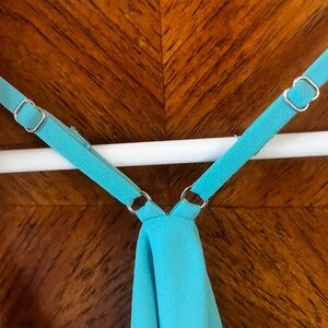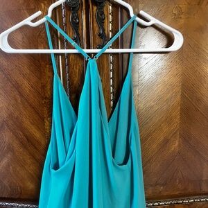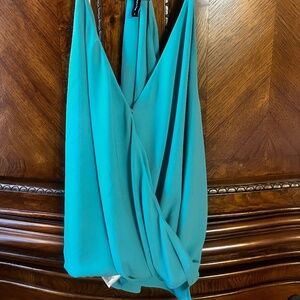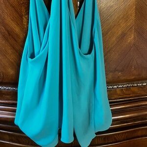 New without tag - BCBGMaxAzria halter top in a size large. Wear this gorgeous teal halter top to a party or an evening event by styling it with pants or a skirt, and heels. Alternatively, you can dress it down for a casual or daytime look by wearing flats and a pair of shorts.