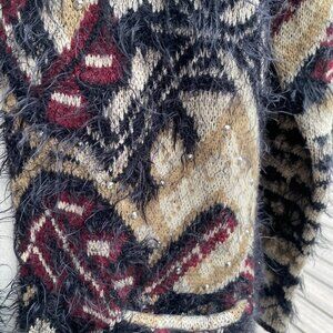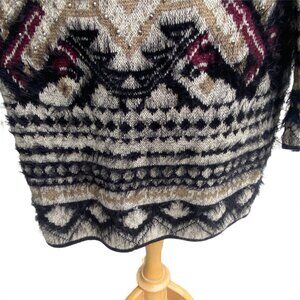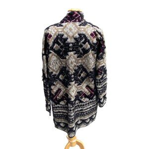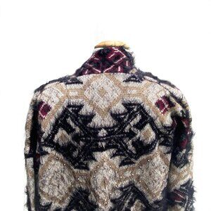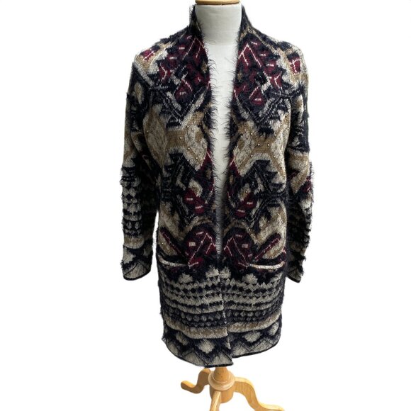 NWOT BCBGMaxazria Fuzzy Eyelash Tribal Cardigan Sz M Burgundy Black Gems Duster Aztec Western Ranch MountainsExcellent Pre-Owned Condition (see pics for details)
