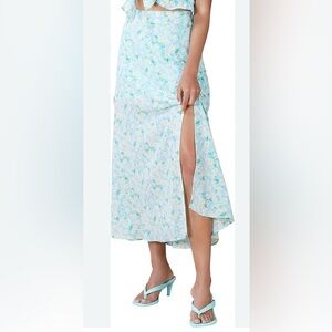NWOT BCBGeneration Relaxed Straight Side Slit Blue Floral Maxi Skirt Size S