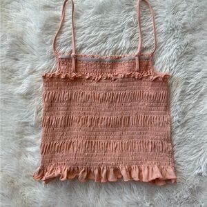 Chic camisole with smocked texture. Features delicate ruffle details. Ideal for versatile styling.