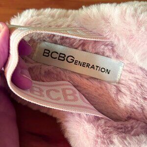NWOT BCBGeneration Pink Fur Crisscross Slippers w/ Logo Heel Strap Womens Size 7