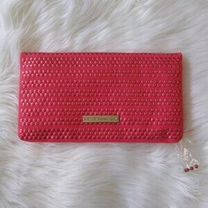 Super cute coral/pink studded, magnetic foldover clutch. The purse is new without it's hang tag, never used, has original packaging, comes with extra studs in a bag attached to zipper.